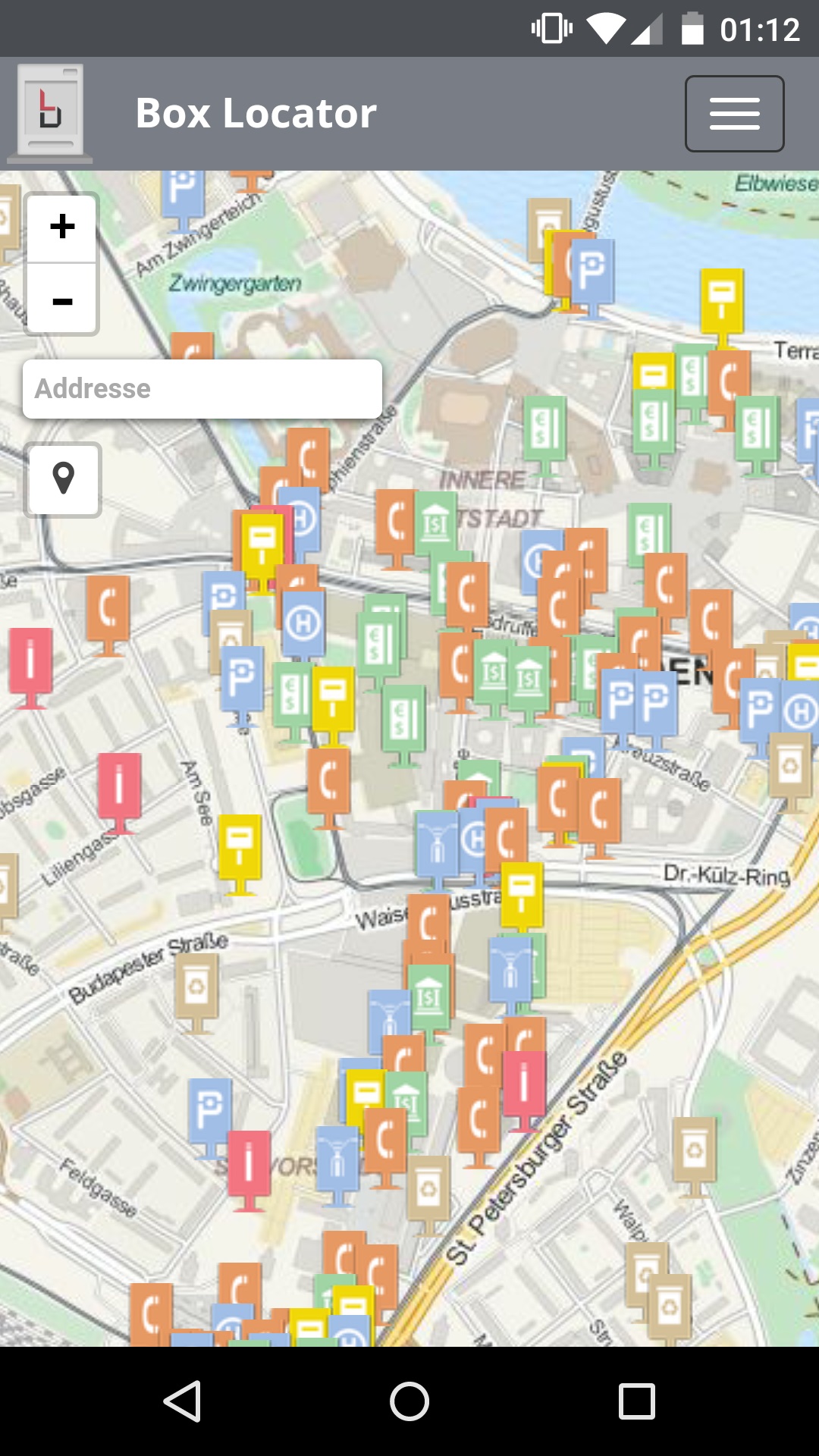 Based upon our database which is derived from the openstreetmap db we provide a native Android App: (Box Locator)